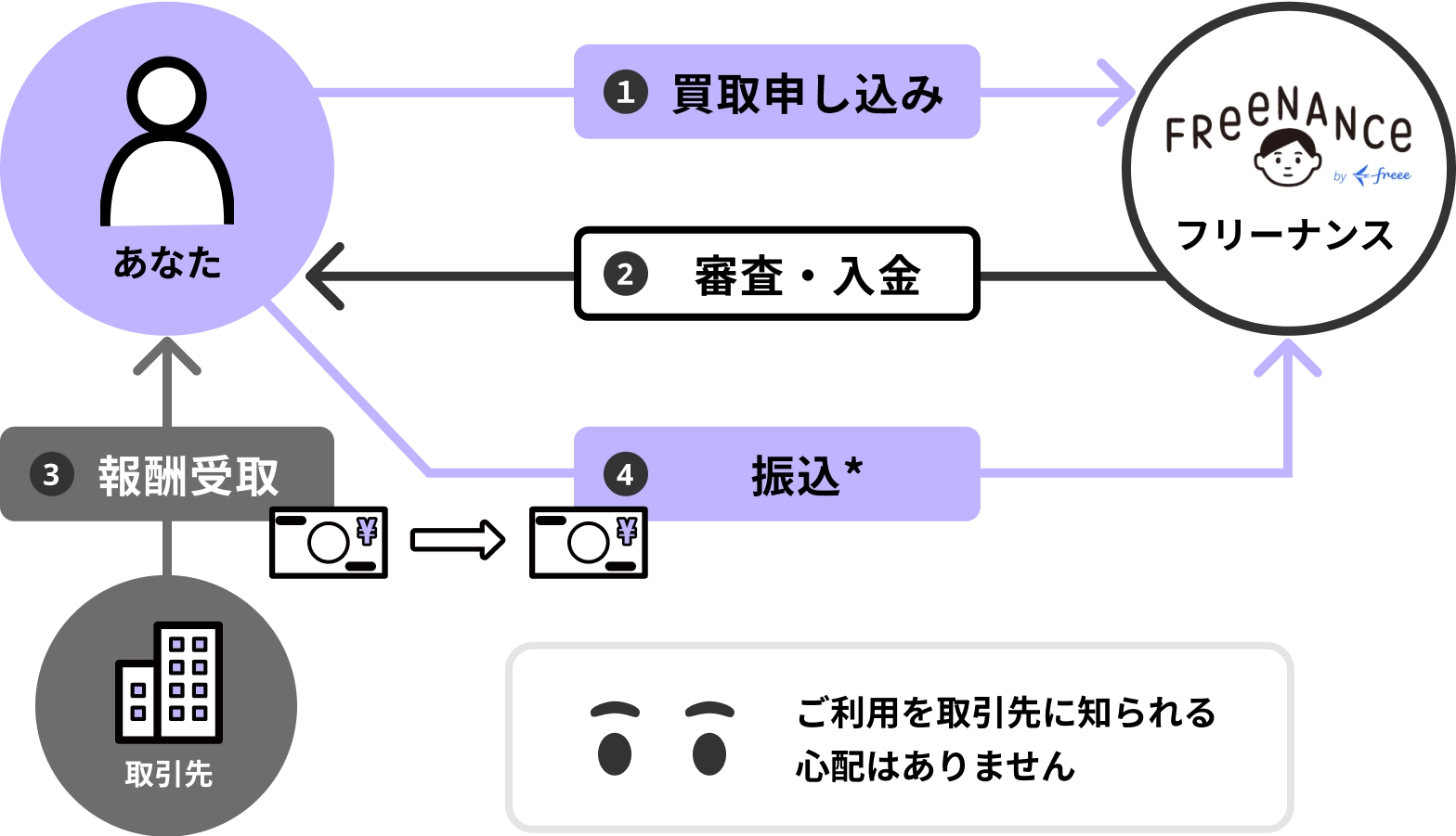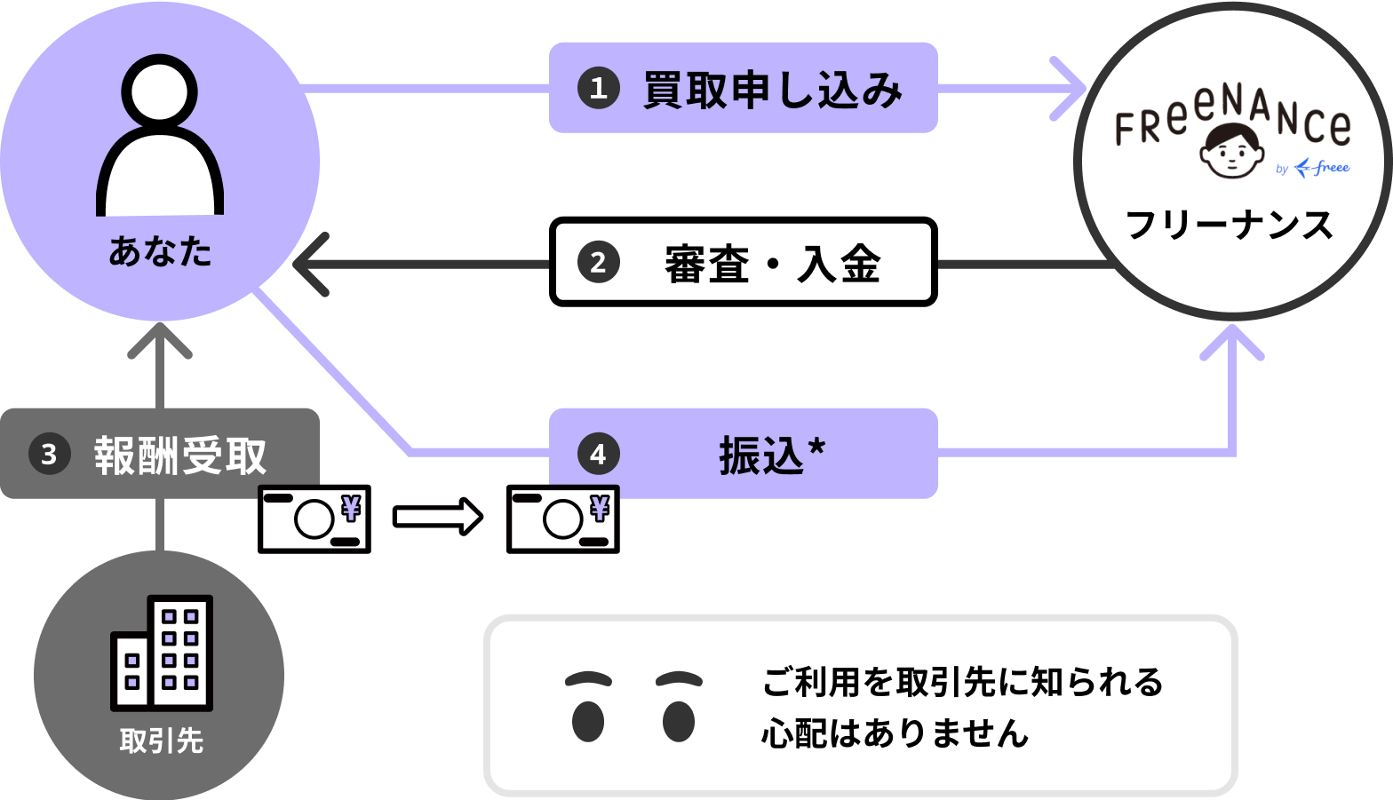 担保や保証人も不要、取引先に請求書の売却が知られることもありません。