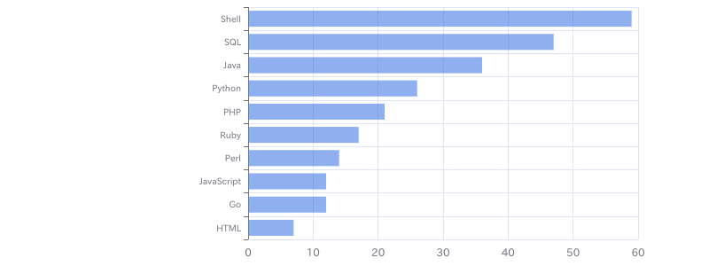 Unix × サーバーエンジニアのフリーランス案件・求人の開発言語別案件数は、①Shell:59件、②SQL:47件、③Java:36件、④Python:26件、⑤PHP:21件、⑥Ruby:17件、⑦Perl:14件、⑧JavaScript:12件、⑨Go:12件、⑩HTML:7件となっています。(※フリーランスHub調べ/2025年10月) Unix × サーバーエンジニアのフリーランス案件・求人に多い開発言語は①Shell、②SQL、③Javaであることがわかります。 Unix × サーバーエンジニアのフリーランス案件・求人に参画を希望するフリーランスの方は①Shell、②SQL、③Javaを中心にフリーランス案件を探されることをおすすめします。