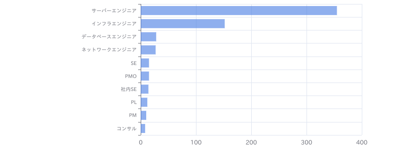 Unix × サーバーエンジニアのフリーランス案件・求人の職種別案件数は、①サーバーエンジニア:355件、②インフラエンジニア:152件、③データベースエンジニア:28件、④ネットワークエンジニア:27件、⑤SE:15件、⑥PMO:15件、⑦社内SE:14件、⑧PL:12件、⑨PM:10件、⑩コンサル:8件となっています。(※フリーランスHub調べ/2025年10月) Unix × サーバーエンジニアのフリーランス案件・求人は①サーバーエンジニア、②インフラエンジニア、③データベースエンジニアが多いことが分かります。