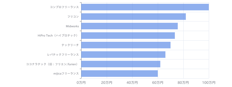 Unix × サーバーエンジニアのフリーランス案件・求人を保有しているフリーランスエージェント別の単価相場は、①コンプロフリーランス:100万円、②フリコン:82万円、③Midworks:75.7万円、④HiPro Tech(ハイプロテック):73.4万円、⑤テックリーチ:70万円、⑥レバテックフリーランス:66万円、⑦ココナラテック(旧:フリエン/furien):62万円、⑧mijicaフリーランス:60万円となっています。(※フリーランスHub調べ/2025年10月) Unix × サーバーエンジニアのフリーランス案件・求人の月額単価が高いフリーランスエージェントは①コンプロフリーランス、②フリコン、③Midworksであることがわかります。 Unix × サーバーエンジニアのフリーランス案件・求人に参画を希望するフリーランスの方は①コンプロフリーランス、②フリコン、③Midworksを中心に複数のフリーランスエージェントに登録することをおすすめします。