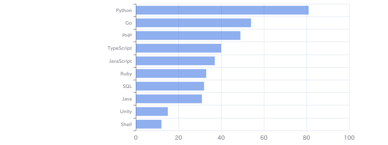 Google Cloud Platform × サーバーエンジニアのフリーランス案件・求人に多い開発言語は①Python、②Go、③PHPであることがわかります。