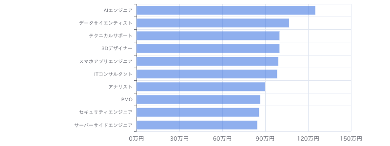 Google Cloud Platform × サーバーエンジニアのフリーランス案件・求人の月額単価が高い職種は①AIエンジニア、②データサイエンティスト、③テクニカルサポートであることがわかります。