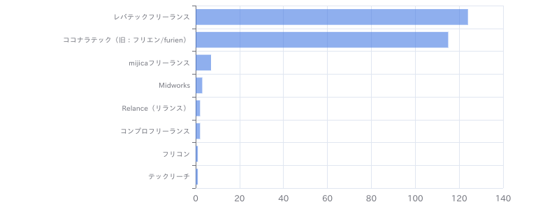 Google Cloud Platform × サーバーエンジニアのフリーランス案件・求人を豊富に保有しているフリーランスエージェントは①レバテックフリーランス、②ココナラテック(旧:フリエン/furien)、③mijicaフリーランスであることがわかります。