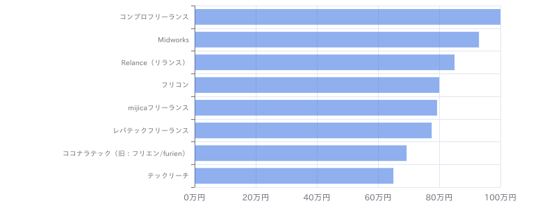 Google Cloud Platform × サーバーエンジニアのフリーランス案件・求人を保有しているフリーランスエージェント別の単価相場は、①コンプロフリーランス:100万円、②Midworks:93万円、③Relance(リランス):85万円、④フリコン:80万円、⑤mijicaフリーランス:79.3万円、⑥レバテックフリーランス:77.5万円、⑦ココナラテック(旧:フリエン/furien):69.3万円、⑧テックリーチ:65万円となっています。(※フリーランスHub調べ/2025年10月)