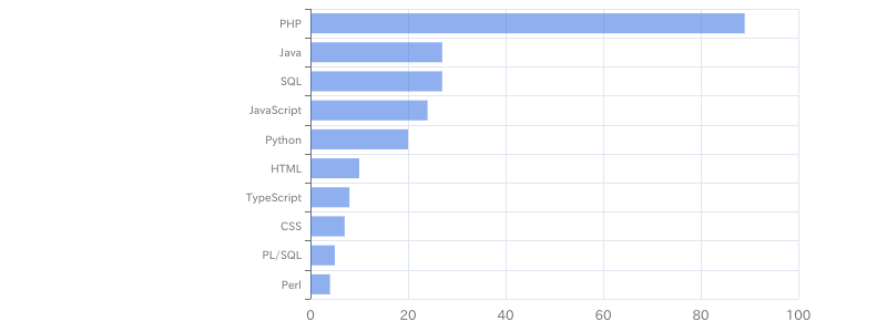 PHP × データベースエンジニアのフリーランス案件・求人の開発言語別案件数は、①PHP:89件、②Java:27件、③SQL:27件、④JavaScript:24件、⑤Python:20件、⑥HTML:10件、⑦TypeScript:8件、⑧CSS:7件、⑨PL/SQL:5件、⑩Perl:4件となっています。(※フリーランスHub調べ/2025年10月) PHP × データベースエンジニアのフリーランス案件・求人に多い開発言語は①PHP、②Java、③SQLであることがわかります。 PHP × データベースエンジニアのフリーランス案件・求人に参画を希望するフリーランスの方は①PHP、②Java、③SQLを中心にフリーランス案件を探されることをおすすめします。