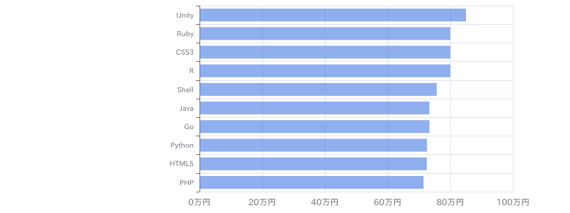 PHP × データベースエンジニアのフリーランス案件・求人の開発言語別の平均単価は、①Unity:85万円、②Ruby:80万円、③CSS3:80万円、④R:80万円、⑤Shell:75.7万円、⑥Java:73.3万円、⑦Go:73.3万円、⑧Python:72.6万円、⑨HTML5:72.5万円、⑩PHP:71.5万円となっています。(※フリーランスHub調べ/2025年10月) PHP × データベースエンジニアのフリーランス案件・求人の月額単価が高い開発言語は①Unity、②Ruby、③CSS3であることがわかります。 PHP × データベースエンジニアのフリーランス案件・求人に参画を希望するフリーランスの方は①Unity、②Ruby、③CSS3を中心に複数の開発言語を用いた案件を検討されることをおすすめします。
