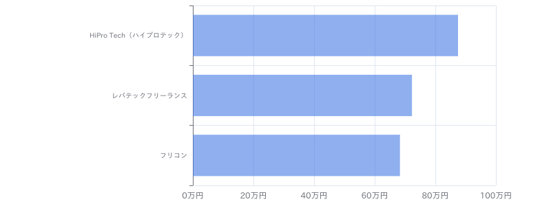 PHP × データベースエンジニアのフリーランス案件・求人を保有しているフリーランスエージェント別の単価相場は、①HiPro Tech(ハイプロテック):87.5万円、②レバテックフリーランス:72.3万円、③フリコン:68.3万円となっています。(※フリーランスHub調べ/2025年10月) PHP × データベースエンジニアのフリーランス案件・求人の月額単価が高いフリーランスエージェントは①HiPro Tech(ハイプロテック)、②レバテックフリーランス、③フリコンであることがわかります。 PHP × データベースエンジニアのフリーランス案件・求人に参画を希望するフリーランスの方は①HiPro Tech(ハイプロテック)、②レバテックフリーランス、③フリコンを中心に複数のフリーランスエージェントに登録することをおすすめします。