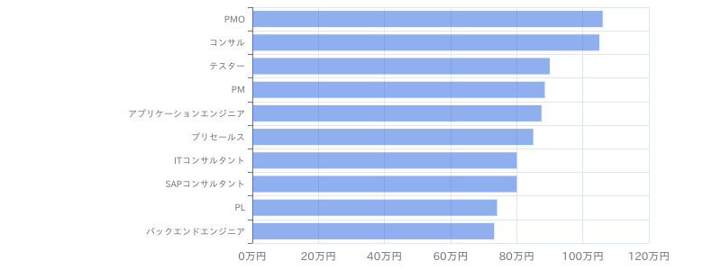 C# × ERPのフリーランス案件・求人の職種別の平均単価は、①PMO:106万円、②コンサル:105万円、③テスター:90万円、④PM:88.5万円、⑤アプリケーションエンジニア:87.5万円、⑥プリセールス:85万円、⑦ITコンサルタント:80万円、⑧SAPコンサルタント:80万円、⑨PL:74.1万円、⑩バックエンドエンジニア:73.2万円となっています。(※フリーランスHub調べ/2026年3月) C# × ERPのフリーランス案件・求人の月額単価が高い職種は①PMO、②コンサル、③テスターであることがわかります。