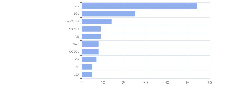 Oracle × 損害保険のフリーランス案件・求人の開発言語別案件数は、①Java:54件、②SQL:25件、③JavaScript:14件、④VB.NET:9件、⑤VB:9件、⑥Shell:8件、⑦COBOL:8件、⑧C#:7件、⑨JSP:5件、⑩VBA:5件となっています。(※フリーランスHub調べ/2026年4月) Oracle × 損害保険のフリーランス案件・求人に多い開発言語は①Java、②SQL、③JavaScriptであることがわかります。 Oracle × 損害保険のフリーランス案件・求人に参画を希望するフリーランスの方は①Java、②SQL、③JavaScriptを中心にフリーランス案件を探されることをおすすめします。