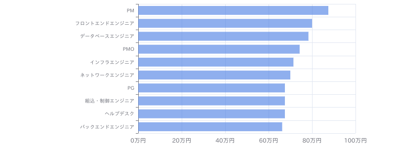 Oracle × 損害保険のフリーランス案件・求人の職種別の平均単価は、①PM:87.5万円、②フロントエンドエンジニア:80万円、③データベースエンジニア:78.3万円、④PMO:74.3万円、⑤インフラエンジニア:71.4万円、⑥ネットワークエンジニア:70万円、⑦PG:67.5万円、⑧組込・制御エンジニア:67.5万円、⑨ヘルプデスク:67.5万円、⑩バックエンドエンジニア:66.2万円となっています。(※フリーランスHub調べ/2026年4月) Oracle × 損害保険のフリーランス案件・求人の月額単価が高い職種は①PM、②フロントエンドエンジニア、③データベースエンジニアであることがわかります。