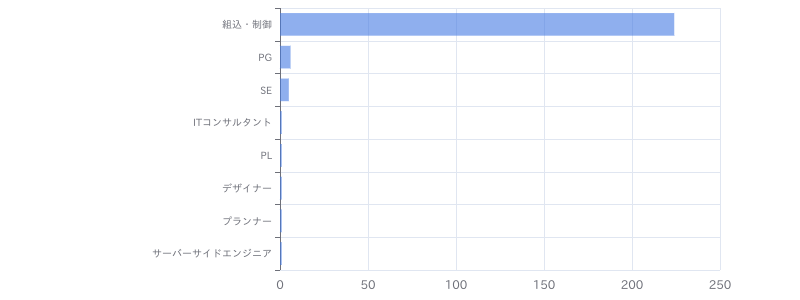 組込・制御 × 在宅・リモートのフリーランス案件・求人の職種別案件数は、①組込・制御:224件、②PG:6件、③SE:5件、④ITコンサルタント:1件、⑤PL:1件、⑥デザイナー:1件、⑦プランナー:1件、⑧サーバーサイドエンジニア:1件となっています。(※フリーランスHub調べ/2025年10月) 組込・制御 × 在宅・リモートのフリーランス案件・求人は①組込・制御、②PG、③SEが多いことが分かります。
