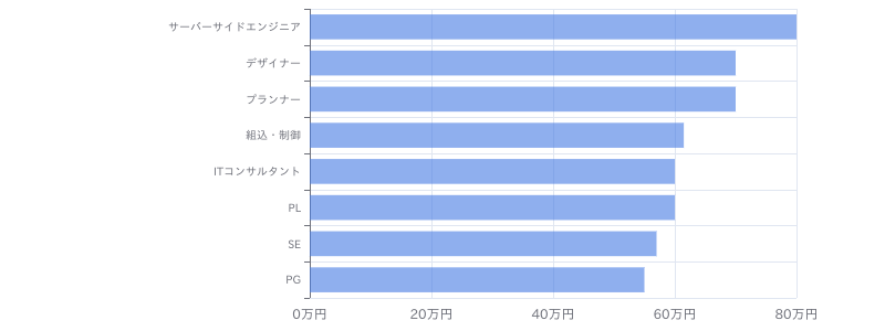 組込・制御 × 在宅・リモートのフリーランス案件・求人の職種別の平均単価は、①サーバーサイドエンジニア:80万円、②デザイナー:70万円、③プランナー:70万円、④組込・制御:61.5万円、⑤ITコンサルタント:60万円、⑥PL:60万円、⑦SE:57万円、⑧PG:55万円となっています。(※フリーランスHub調べ/2025年10月) 組込・制御 × 在宅・リモートのフリーランス案件・求人の月額単価が高い職種は①サーバーサイドエンジニア、②デザイナー、③プランナーであることがわかります。