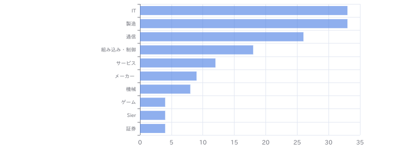組込・制御 × 在宅・リモートのフリーランス案件・求人の業界別案件数は、①IT:33件、②製造:33件、③通信:26件、④組み込み・制御:18件、⑤サービス:12件、⑥メーカー :9件、⑦機械:8件、⑧ゲーム:4件、⑨Sier:4件、⑩証券:4件となっています。(※フリーランスHub調べ/2025年10月) 組込・制御 × 在宅・リモートのフリーランス案件・求人は①IT、②製造、③通信が多いことが分かります。 組込・制御 × 在宅・リモートのフリーランス案件・求人に参画を希望するフリーランスの方は①IT、②製造、③通信を中心に複数の業界の案件を検討されることをおすすめします。
