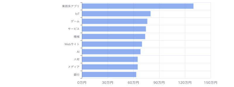 組込・制御 × 在宅・リモートのフリーランス案件・求人の業界別の平均単価は、①業務系アプリ:130万円、②IoT:80万円、③ゲーム:76.3万円、④サービス:74.6万円、⑤機械:73.8万円、⑥Webサイト:70万円、⑦AI:68.3万円、⑧人材:65万円、⑨メディア:65万円、⑩銀行:63.3万円となっています。(※フリーランスHub調べ/2025年10月) 組込・制御 × 在宅・リモートのフリーランス案件・求人の月額単価が高い業界は①業務系アプリ、②IoT、③ゲームであることがわかります。 組込・制御 × 在宅・リモートのフリーランス案件・求人に参画を希望するフリーランスの方は①業務系アプリ、②IoT、③ゲームを中心に複数の業界の案件を検討されることをおすすめします。