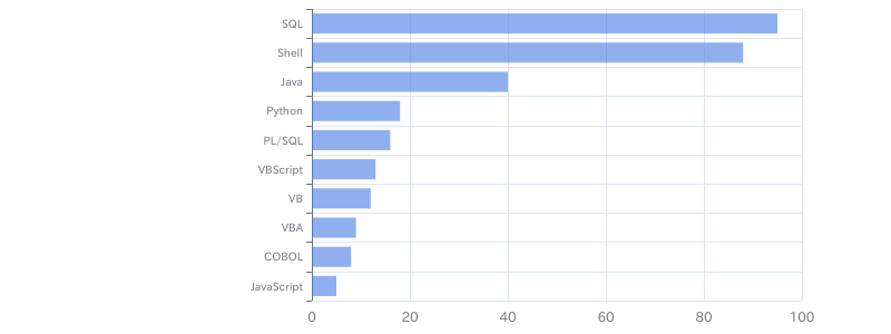 JP1 × インフラエンジニアのフリーランス案件・求人の開発言語別案件数は、①SQL:95件、②Shell:88件、③Java:40件、④Python:18件、⑤PL/SQL:16件、⑥VBScript:13件、⑦VB:12件、⑧VBA:9件、⑨COBOL:8件、⑩JavaScript:5件となっています。(※フリーランスHub調べ/2025年10月) JP1 × インフラエンジニアのフリーランス案件・求人に多い開発言語は①SQL、②Shell、③Javaであることがわかります。 JP1 × インフラエンジニアのフリーランス案件・求人に参画を希望するフリーランスの方は①SQL、②Shell、③Javaを中心にフリーランス案件を探されることをおすすめします。