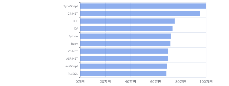JP1 × インフラエンジニアのフリーランス案件・求人の開発言語別の平均単価は、①TypeScript:100万円、②C#.NET:95万円、③JCL:75万円、④C#:73.3万円、⑤Python:71.9万円、⑥Ruby:71.7万円、⑦VB.NET:70万円、⑧ASP.NET:70万円、⑨JavaScript:69万円、⑩PL/SQL:68.5万円となっています。(※フリーランスHub調べ/2025年10月) JP1 × インフラエンジニアのフリーランス案件・求人の月額単価が高い開発言語は①TypeScript、②C#.NET、③JCLであることがわかります。 JP1 × インフラエンジニアのフリーランス案件・求人に参画を希望するフリーランスの方は①TypeScript、②C#.NET、③JCLを中心に複数の開発言語を用いた案件を検討されることをおすすめします。