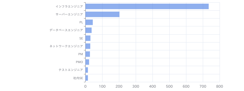JP1 × インフラエンジニアのフリーランス案件・求人の職種別案件数は、①インフラエンジニア:735件、②サーバーエンジニア:203件、③PL:44件、④データベースエンジニア:37件、⑤SE:30件、⑥ネットワークエンジニア:29件、⑦PM:27件、⑧PMO:22件、⑨テストエンジニア:15件、⑩社内SE:15件となっています。(※フリーランスHub調べ/2025年10月) JP1 × インフラエンジニアのフリーランス案件・求人は①インフラエンジニア、②サーバーエンジニア、③PLが多いことが分かります。