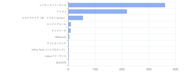 JP1 × インフラエンジニアのフリーランス案件・求人を保有しているフリーランスエージェントは、①レバテックフリーランス:361件、②フリコン:219件、③ココナラテック(旧:フリエン/furien):55件、④エンジニアルーム:10件、⑤テックリーチ:9件、⑥Midworks:4件、⑦アットエンジニア:2件、⑧HiPro Tech(ハイプロテック):2件、⑨mijicaフリーランス:2件、⑩ELEVATE:1件となっています。(※フリーランスHub調べ/2025年10月) JP1 × インフラエンジニアのフリーランス案件・求人を豊富に保有しているフリーランスエージェントは①レバテックフリーランス、②フリコン、③ココナラテック(旧:フリエン/furien)であることがわかります。 JP1 × インフラエンジニアのフリーランス案件・求人に参画を希望するフリーランスの方は①レバテックフリーランス、②フリコン、③ココナラテック(旧:フリエン/furien)を中心に複数のフリーランスエージェントに登録することをおすすめします。