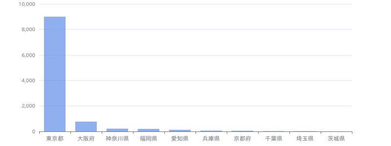JavaScript × フロントエンドエンジニアのフリーランス案件・求人の都道府県別案件数は、①東京都:8997件、②大阪府:767件、③神奈川県:214件、④福岡県:197件、⑤愛知県:127件、⑥兵庫県:62件、⑦京都府:52件、⑧千葉県:25件、⑨埼玉県:23件、⑩茨城県:6件となっています。(※フリーランスHub調べ/2025年9月) JavaScript × フロントエンドエンジニアのフリーランス案件・求人が集中している都道府県は①東京都、②大阪府、③神奈川県であることがわかります。 JavaScript × フロントエンドエンジニアのフリーランス案件・求人に参画を希望するフリーランスの方は①東京都、②大阪府、③神奈川県を中心にフリーランス案件を探されることをおすすめします。