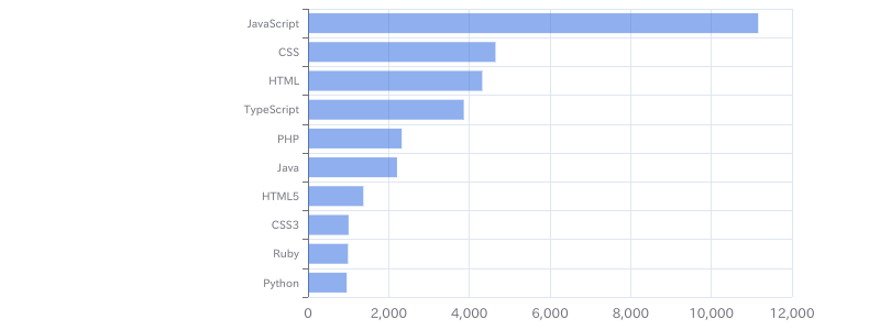 JavaScript × フロントエンドエンジニアの開発言語別案件数