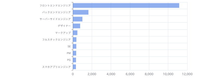 JavaScript × フロントエンドエンジニアの職種別案件数