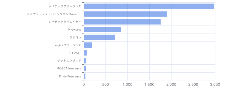 JavaScript × フロントエンドエンジニアのフリーランス案件・求人を保有しているフリーランスエージェントは、①レバテックフリーランス:2980件、②ココナラテック(旧:フリエン/furien):1908件、③レバテッククリエイター:1758件、④Midworks:857件、⑤フリコン:710件、⑥mijicaフリーランス:186件、⑦ELEVATE:70件、⑧アットエンジニア:56件、⑨ROSCA freelance:53件、⑩Findy Freelance:40件となっています。(※フリーランスHub調べ/2025年9月) JavaScript × フロントエンドエンジニアのフリーランス案件・求人を豊富に保有しているフリーランスエージェントは①レバテックフリーランス、②ココナラテック(旧:フリエン/furien)、③レバテッククリエイターであることがわかります。 JavaScript × フロントエンドエンジニアのフリーランス案件・求人に参画を希望するフリーランスの方は①レバテックフリーランス、②ココナラテック(旧:フリエン/furien)、③レバテッククリエイターを中心に複数のフリーランスエージェントに登録することをおすすめします。